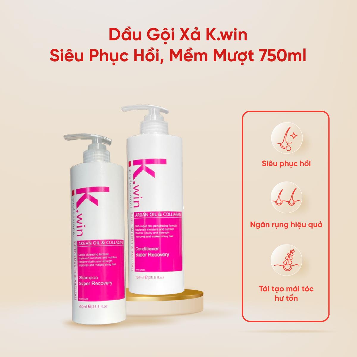 Cặp Dầu Gội Xả K.win Siêu Phục Hồi, Mềm Mượt – sự kết hợp hoàn hảo giữa công nghệ tiên tiến và các thành phần tự nhiên tinh túy. Sản phẩm này được phát triển với công nghệ thuỷ phân nano để thẩm thấu sâu vào tóc, kết hợp với Hydrolyzed Collagen, dầu argan, và vitamin E, mang lại hiệu quả phục hồi vượt trội và cảm giác mềm mượt tuyệt vời