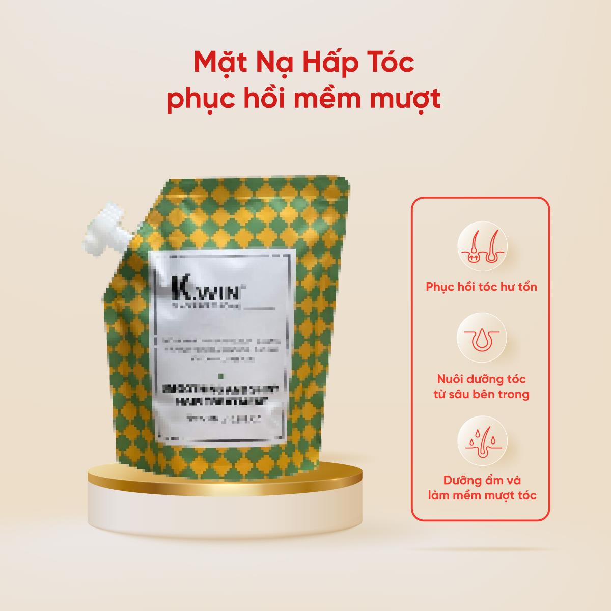 + Lấy một lượng vừa đủ Mặt Nạ Hấp Túi K.win, thoa đều lên toàn bộ mái tóc, đặc biệt tập trung ở phần ngọn và những vùng tóc hư tổn.